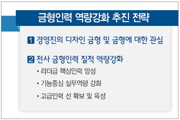 이러한 관심 속에 2011년 8월, 금형 인력 강화안을 마련했다. 이 안은 ‘리더급 핵심인력 양성’, ‘기능인력 중심 실무역량’, ‘고급인력 선 확보 및 육성’으로 구성된다.