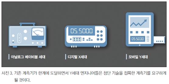 계측기가 새로운 세대로 진화를 거듭하고 있다. 아날로그에서 디지털로, 그리고 다시 지능형 기술을 결합한 차세대 계측기로 빠른 변신을 이루게 된 배경에는 Y세대의 기술에 대한 열정과 사회 진출이 시작되면서부터다.
