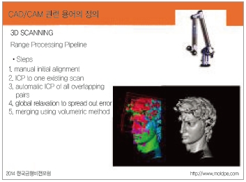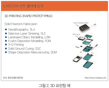 3D 스캐닝은 3차원 형상의 모델을 이미지 형태로 받아들여 3차원 형상의 데이터로 컴퓨터에 인식시키는 작업이다. 3D 프린팅(래피드 프로토타이핑, 쾌속조형)은 3차원 형상 데이터를 이용하여 부품의 형태를 실제로 만들어서 보여줄 수 있는 기술로, SLA, SLS, LOM, FDM 등의 여러 방식이 있다.