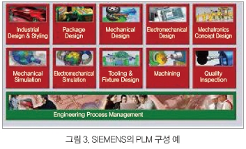 PDM은 제품개발 과정 전반의 정보와 업무 프로세스를 시스템화하여 각종 정보들의 공유와 관련 부서 간의 업무흐름을 조절하며 진정한 동시 병행 설계환경을 제공한다. CE는 제품생산에 있어 기업 내 각 부문 전문가들이 가능한 한 가장 일찍 동시에 작업을 함으로써 저비용으로 신속하게 고품질, 고기능, 생산성 향상을 달성할 수 있게 한다. ERP는 전사적 자원관리시스템 혹은 전사적 통합정보시스템을 말한다.