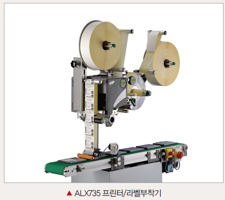 프린터/라벨부착기 ALX 73X 및 92X 시리즈는 이미 유럽 각국에서도 인정받고 있는 제품으로서 초고속으로 고품질의 인쇄가 가능하고, 다양한 라벨을 부착 할 수 있습니다. 주요 사양으로는 300dpi의 해상도, 분당 24~50M의 고속 라벨 부착이 가능하며, 최고 인쇄속도는 초당 300~400mm이며, 최대 인쇄폭은 104~160mm입니다.