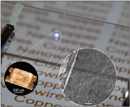 참고 그림 2. LED를 밝히는 구리 나노선 투명전극