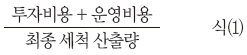 다음의 항목은 인라인 세척 공정 파라미터가 전체 공정비용과 관련 있음을 나타내준다.
