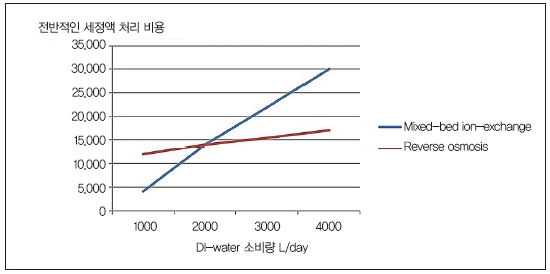 하루에 2,000L 이상의 DI-water를 사용한다면, 삼투압 시스템에 대한 투자 가치가 있다.