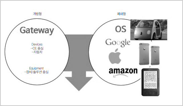 운영체제 진영과 게이트웨이 진영의 가장 큰 차이를 상대적 관점에서 살펴본다면 폐쇄형과 개방형이라는 데 있다(그림 2 참조).