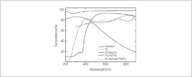 ▲ 그림 4. 투명전극 활용 물질의 파장에 따른 빛 그래프