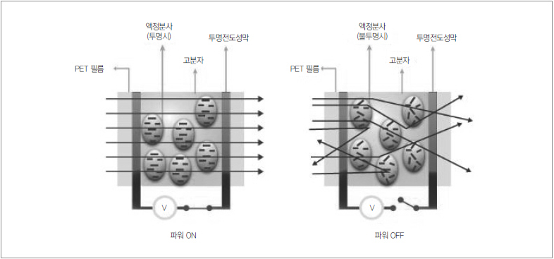 이에 따라 그래핀으로 투명전극을 제작해 미래에 고갈될 수 있는 희토류 자원을 대체할 수 있는 소재를 현실화함으로써, 지구환경 보존에 일조하는 기술 개발이 많은 곳에서 진행 중이다. PDLC(Polymer Dispersed Liquid Crystal)는 폴리머 액정 디스플레이로, 게임기 또는 투명디스플레이 후면에 배경을 차단·투과·확산시키는 조절장치다.