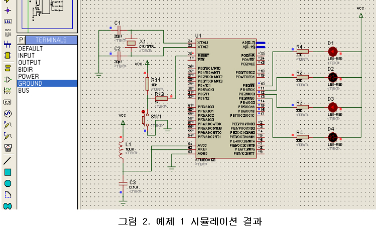 proteus VSM으로 시뮬레이션 한 결과를 살펴보면 그림 2와 같다.