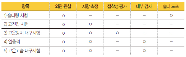 표 4. 전장품 Bare PCB Board에 대한 시험 및 평가 항목