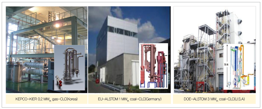 100kWth 공정을 Chalmers 대학에 설치하여 기술개발에 활용하고 있으며, 상용 규모(450MW) 공정용 설계 자료 도출을 위해 ALSTOM사에서 1MWth 공정을 독일 Tech. Univ. of Darmstadt에 설치하여 현재 운전 중이다.
