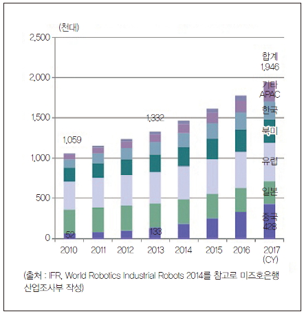 그림 1. 지역별 로봇 출하 대수 추이