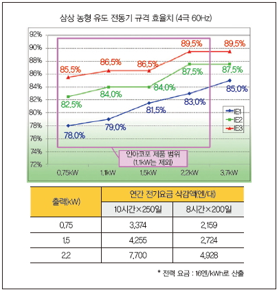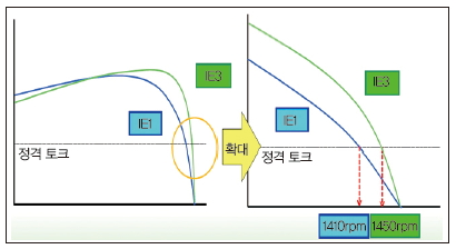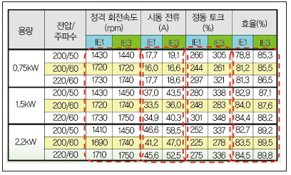 표 3. 용량에 따른 IE1과 IE3 효율 비교