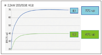IE3는 효율이 높아 모터의 발열 온도를 감소한다. 철손 또한 철심에 발생하는 손실을 감소한다. 1차 동손은 고정자 권선에 발생하는 손실을 감소하고 2차 동손은 회전자에 발생하는 손실을 감소한다.