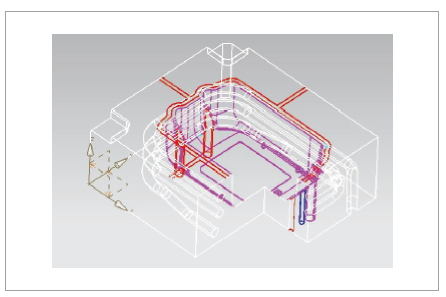 그림 3. 배터리 케이스의 코아 금형 부품의 3D 금형설계도의 냉각회로도