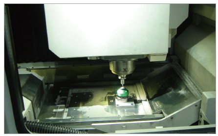 코아 가공은 작성된 3D 모델링 형상 그대로 가공하기 위한 방법과 공정은 캐비티와 동일하게 실행됐다. 가공 조건 및 결과는 다음의 표 3과 표 4에 나타냈으며, 제작된 코아 부품은 그림 7에 나타냈다.