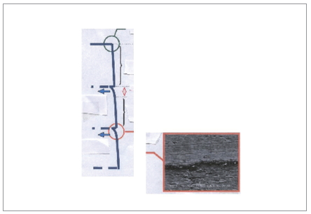 그림 1에 가공된 금형 캐비티 형상을 나타냈다. 1프로세스마다 NC 가공 완료 후 다음 프로세스에서 NC 가공할 때 단차가 발생했다. 전체적으로 측벽의 표면조도는 크게 나타났으며, 제품의 하측 치수가 상측 치수보다 큰 형상으로 직각도에서 약 0.3° 정도가 작은 사다리꼴형이다. 그림 6에 측벽의 표면 형상을 나타냈다.