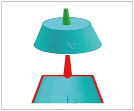 그림 9에 표시한 것처럼 디스크 모양의 러너를 거쳐 디스크 게이트는 설치된다. 성형품의 원형 구멍에 게이트를 배치한 것으로 어느 정도 성형품의 형상에 의해 제한을 받게 된다. 중앙부에 구멍이 있는 경우 대부분 웰드라인이 발생하지만 디스크 게이트를 사용함으로써 웰드라인의 발생을 방지할 수 있다.