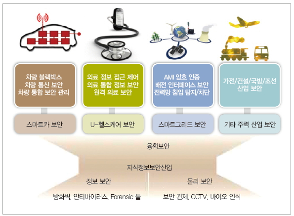 의료 정보망 해킹에 의한 원격 의료기기 조작이나 개인 의료 정보 유출, 스마트카 해킹에 의한 교통망 교란, 차량 절도, 스마트그리드 해킹에 의한 대규모 정전, 전기요금 조작, 금융망 해킹에 의한 주가 및 잔고 조작, 개인 신용 정보 유출, 스마트 홈 해킹에 의한 스마트 홈 침입, 스마트 정보 가전 해킹, IT 융합 부문 해킹에 의한 제품의 신뢰성 저하 및 기업의 생산성 저하의 피해를 초래하게 될 것이다.