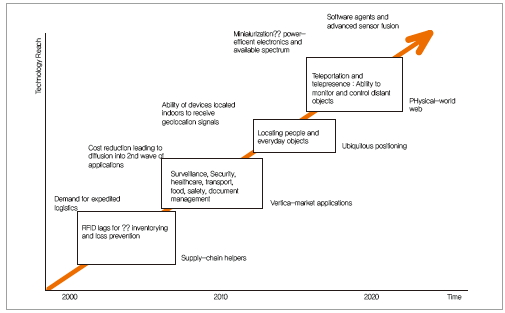 그림 1의 IoT 기술 로드맵을 한번 살펴보자. 비록 CCTV 기반의 보안시장이 주도적이기는 하지만 모바일과의 연계, 다양한 센서와의 융합 등으로 IoT의 확산으로 이어지고 있음을 유추할 수 있다.