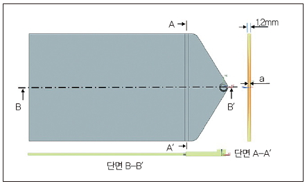 그림 2는 게이트 단면이 곡선을 가지고 있는 엣지 게이트 형상이다.