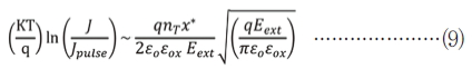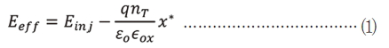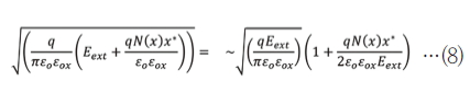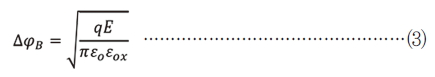 여기서 q, E, εo, 그리고 εox는 각각 기본 전하량(elementary charge), 폴리/폴리옥사이드 적층 계면에서의 전계, 유전체의 광학 유전 상수, 그리고 진공 유전율(vacuum permittivity)이다.