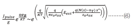 첫 번째 근사치에서 외부 펄스는, 많은 수의 빈 곳(empty) 또는 중성 트랩들을 갖기 때문에 초기에 폴리옥사이드가 더욱 도전성을 갖도록 트랩의 점유 상태가 변하므로 배리어 높이 jB를 변경하지 않았다. 하지만 DjB를 변경한다고 가정할 수 있다. 그러나 점차적으로 트랩들이 채워지게 되면 전류 누설은 줄게 된다. 그 이유는 우리가 점차 상당량의 트랩들을 채울 것이며 폴리옥사이드를 통한 일부 우선 도전 경로를 줄일 것이기 때문이다. 폴리/폴리옥사이드 계면이 가깝다고 가정하면, 전계는 다음과 같다.