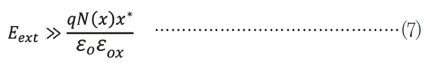 외부 전위(potential)는 Eext=Vgate/dox이며, 여기서 dox는 폴리옥사이드 두께이므로 위의 식은 다음과 같이 쓸 수 있다.