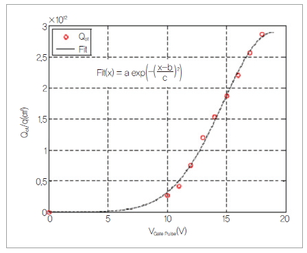 즉 위의 I-V 특성에 의해서 우리는 매 펄스 동안 포획된 전하 밀도인 Qot를 알 수 있다. 그림 6은 그 결과를 보여준다.