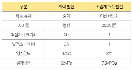 표 1. 화력 발전과 초임계 CO₂ 발전 비교
