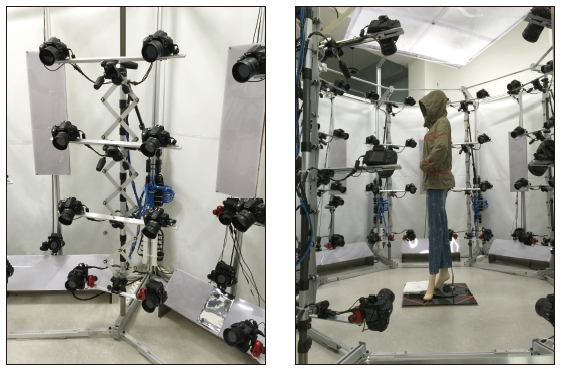 360° 사진 촬영 방식을 통한 피사체 사이즈 맞춤 조절형 3D촬영 부스이다. 360° 원형 부스 형태의 구조물에 피사체의 크기에 맞춰 높낮이 및 촬영 영역을 조절할 수 있는 장치를 추가하여 다수의 DSLR 카메라를 설치한 3D스캔 대응 촬영장치이다. 기존의 고정형 세팅의 문제점을 개선하여 피사체 맞춤 방식의 최적화 시스템을 구현, 인체나 동물 등 활동성 개체에 적합한 3D스캐닝 시스템이다.