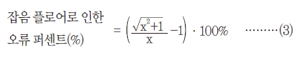 이로 인해 잡음 플로어가 측정에 약 0.5% 가량 기여할 것이다. 식 (2), (3)은 잡음 플로어로 인한 오류 퍼센트(%)를 알아내는데 사용된다. 그러면 자신의 상황에 무엇이 허용되는지 알아낼 수 있다.