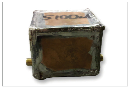 차폐 케이블의 차폐가 와이어가 잡은 잡음을 감소시키는 것과 같다. 그림 4는 차폐 박스(상단 열림)의 테스트 구조를 보여주고 있다. 단락 방지를 위한 바닥의 발포고무에 유의한다.