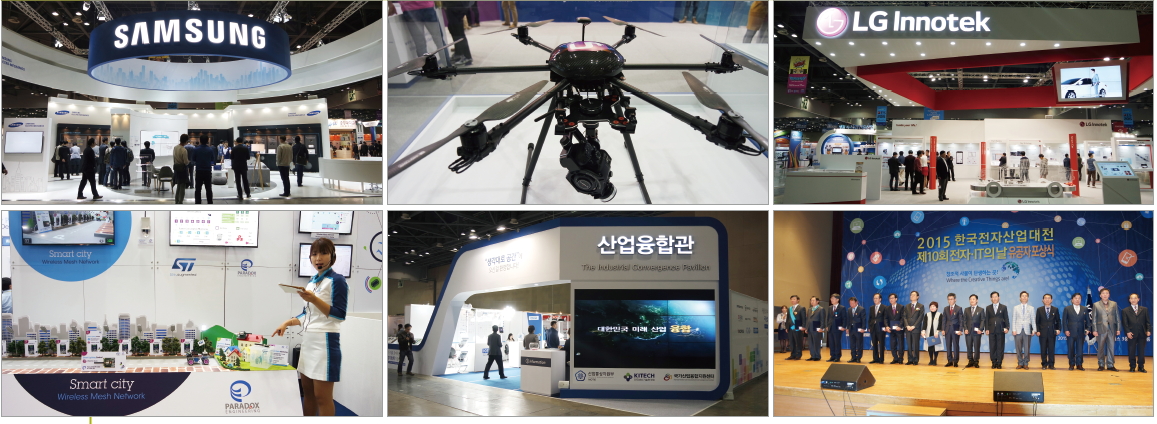 또한 스마트폰, IoT 생활가전 등 우리나라가 세계적으로 경쟁력을 갖추고 있는 최첨단 제품을 비롯해 SKT 스마트홈 서비스 탑재 제습기, 지정맥 인식 출입통제기, 플러그 & 플레이 방식 보안장치, 레이더 장착 스마트폰 무인경비 시스템 등 최신 융합 제품들이 대거 전시됐다.