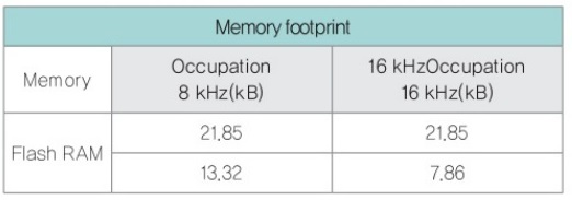 표 2: 트랜스미터 측에서 BlueVoice의 메모리 풋프린트