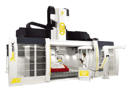 호마종합통상이 출시한 DINOMAX는 강력 가공과 고속 절삭에 적합한 이동 교량 갠트리 기중기 타입의 5축 머시닝센터이다.
