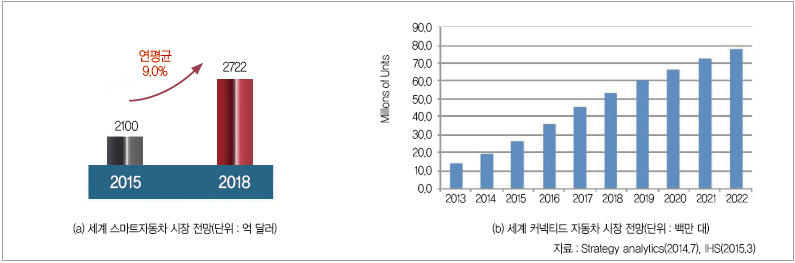 ▲ 그림 1. 스마트자동차, 커넥티드카 관련 세계 시장 전망