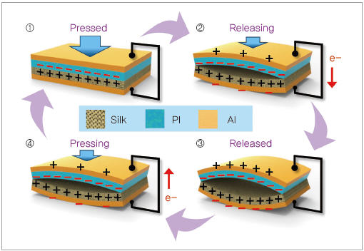 국내 연구진이 천연 바이오 재료인 실크를 마찰시켜 발생시킨 정전기로 마찰 전기 발전기를 개발하는 데 성공했다. KAIST의 오일권 교수팀은 미래창조과학부가 지원하는 리더연구자지원사업(창의연구)을 통해 연구를 수행했다.