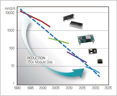 지난 25년간 TI는 매년 평균 20%의 모듈 크기를 감소해 왔다
