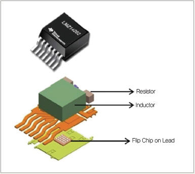 이 패키지에서는 칩 위에 능동 부품들을 쌓아 공간 절약 완성형 전원 시스템을 제공하고 있으며, 외부 리드로 마운팅을 단순화해 접근하기 쉽게 하고 있다. 이러한 모듈은 혹독한 환경에서 사용할 수 있도록 견고한 옵션들을 갖추고 있다.