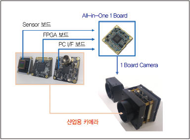 1 Board Camera의 성능이 산업용 카메라와 동일하다는 것이 1 Board Camera 제작이 쉽다는 것을 의미하지는 않는다. 1 Board Camera를 제조하기 위해서는 산업용 카메라 제조를 위한 모든 노하우가 필요하기 때문이다. 센서, FPGA, PC I/F를 하나의 보드에 구현해야 하는 만큼, 카메라 제조를 위한 모든 기반 기술을 갖추어져야 한다. 이중에서 하나라도 아웃 소싱에 의지하는 경우 1 Board Camera 설계하는 기술을 갖기 어렵다.