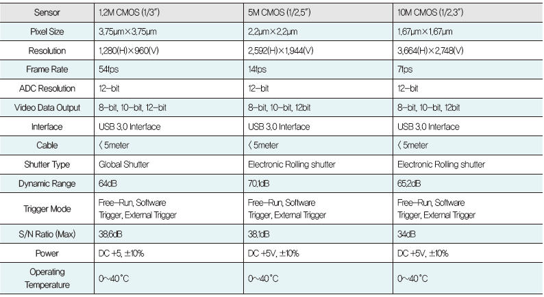 5M/10M의 경우 높은 가격 때문에 범용적인 사용에 다소 어려움이 있었지만, 2016년 개발된 라온피플의 5M/10M 카메라는 거품을 쏙 뺀 아주 만족스러운 가격으로 제공된다.