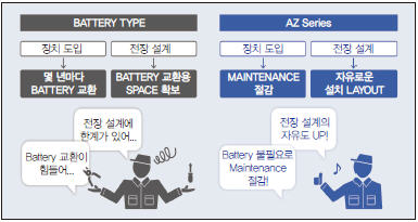 ① 유지보수 시간/비용 절감 : 배터리 교환이 불필요하므로, 유지보수 시간과 비용을 절감할 수 있다. 또한, 외부 센서 없이 원점 복귀가 가능하므로 외부 센서 교환을 위한 공간 확보 등 공간이 절약되는 장점이 있다.
