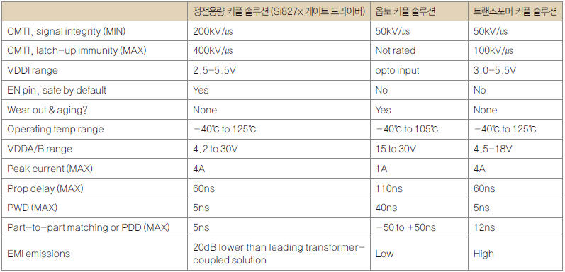 최근에 나오는 일부 트랜스포머 결합 게이트 드라이버는 CMTI 사양이 50kV/㎲(최소)에 이르고 있다. 하지만 이 정도는 여전히 극히 높은 효율을 요구하는 시스템에 사용하기에 충분하지 않다.