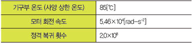 기어의 내마모성과 내충격성의 관점에서 표 1, 표 2와 같이 한 방향 연속 운전 시험 및 순간 정역 운전 시험을 통해 충분한 내구성이 있다는 것을 확인했다. 위의 두 조건에서 시험했고, 치차의 마모와 백래시의 경시 변화를 조사한 결과 문제되는 경시 변화는 확인되지 않았다.