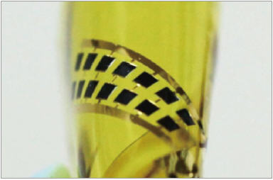 ▲ 필름 위에 제작된 유연한 인체삽입용 태양전지