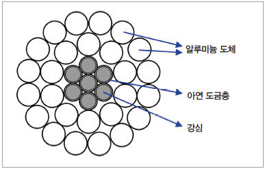 ▲ 그림 2. 우리나라 가공송전선 ACSR 단면 구조