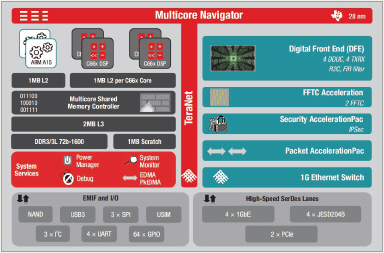 C66x 코어가 풍부한 신호 처리 소스 코드 라이브러리로 효율적인 신호 처리 능력을 발휘한다면, ARM 코텍스-A15 코어는 리눅스 기반의 방대한 오픈소스 라이브러리와 서비스에 대한 접근성을 제공한다. 이러한 기능들과 풍부한 I/O들 덕분에 SWaP-C, 출시 기간, 미래지향성 등 T&M 시장의 까다로운 요건을 충족시키는 뛰어난 SoC 플랫폼이 되었다.