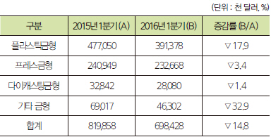 ▲2016년 1분기 금형 무역수지