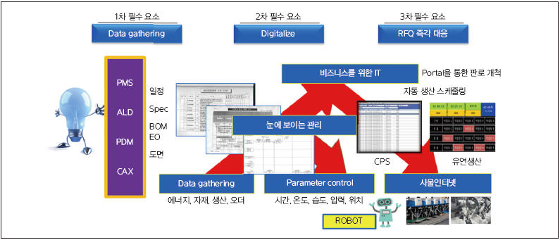 지면으로 하다 보니, 한계가 있어 접근하기 위한 성공 요소를 그림 2로 마무리 하고자 한다. 3년 동안 1단계씩 세 가지 관점 즉, 마케팅과 공유와 재미 관점에서 차분히 변화의 기차에 승차하면, 세상을 보는 눈이 자연스레 달라져서 그 이후엔 자체적으로 지속적인 자생력과 변화 대응 능력을 갖추게 된다. 또한, 단순히 솔루션과 설비만을 돈으로 구매하려는 생각에서 벗어나 개선하려고 하는 지속적 구상이 경쟁력임을 알고 도전하고 습관화하게 된다. 이것은 중국이나 동남아가 따라오지 못하는 부문으로 우리가 스마트라는 가치로 차별화할 수 있는 영역이다.