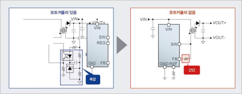 ▲ 그림 1. 포토커플러가 필요 없으며 저항 1개로 절연 전원 안정화